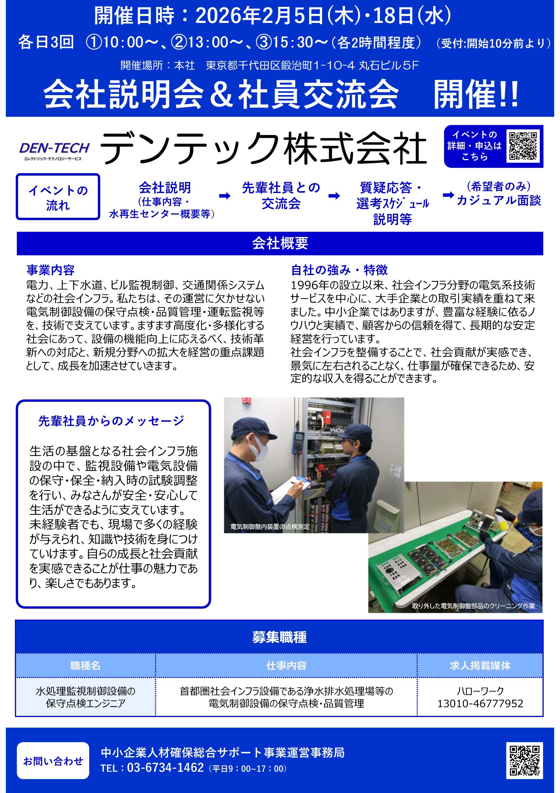 デンテック株式会社では、以下の日程で会社説明会および社員交流会を開催いたします。
